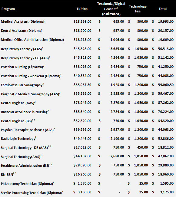 Tuition and direct expenses vary by program and are listed above. The indirect expenses below are based off a monthly average and may be prorated when academic years are shorter or longer. Indirect expenses reflect an average cost of the components that fall within the category. For additional cost of attendance budgets please contact the Financial Aid office.